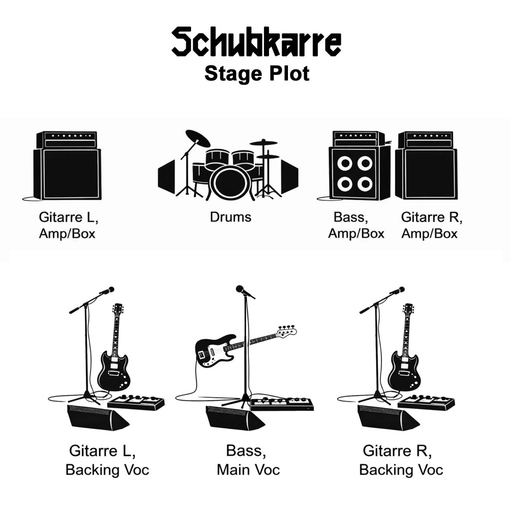 Wir sind SCHUBKARRE, eine 4-köpfige Metal/Punk-Band aus dem Raum Stuttgart mit Gesang, zwei Gitarren, Bass und Schlagzeug.
